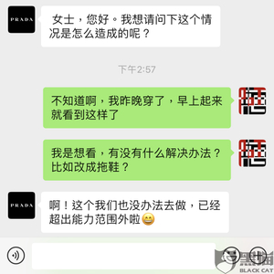黑猫投诉:三亚亚龙湾奥特莱斯prada店不是代理店,买的凉鞋第二天早上坏了,拒绝处理