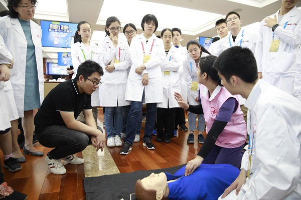 “我觉得现在医院和我小时候印象里的医院不一样了。有些科幻的感觉!”来自复兴中学的高一学生王同学说,“这么多高科技的设备、技术,让我们大开眼界。”