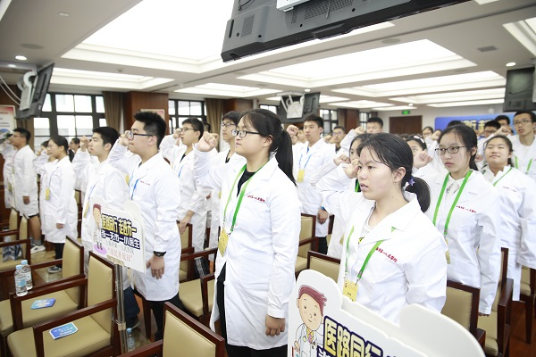 图说:参加体验日活动的市民代表进行医者宣誓 来源/院方供图(下同)