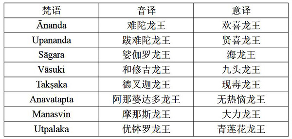佛教“龙王”仅仅是中国化的词汇,并非中国传统文化中的龙,但它逐步融入了中国文化。中国的龙本是动物形,人形龙是佛教传入后而出现的。敦煌壁画中的五头龙王为人身人面,头出五蛇,就是佛教传入的龙王。唐代张说《梁四公记》中首次出现了人形龙王与人形龙女,并逐渐将他们的形象进行了本土化。《许汉阳》海龙王诸龙女“杳如神仙”,《西游记》中有着一头黑长直秀发的龙女完全是中国女性的妆扮。