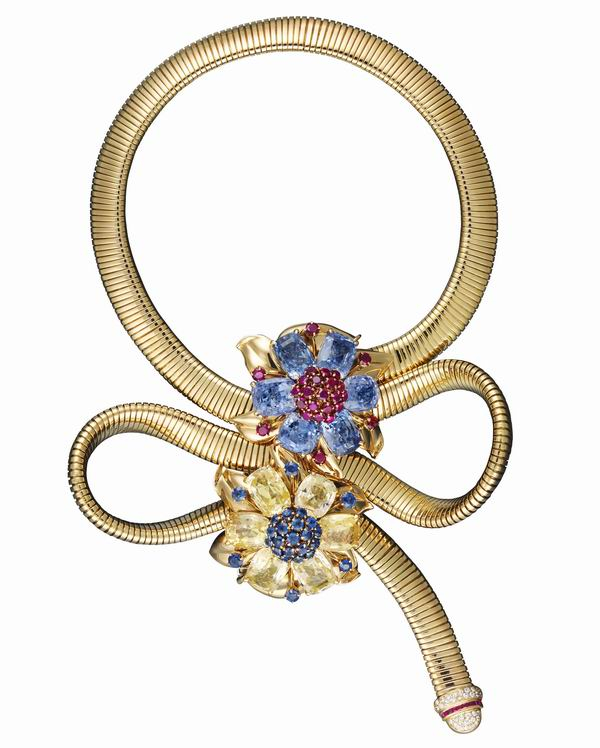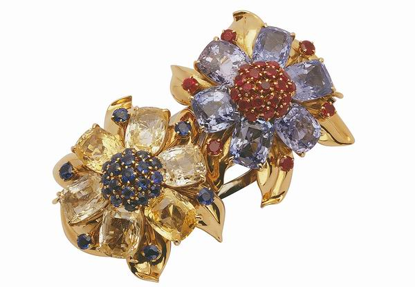 Two Flowers Passe-Partout项链,巴黎,1939年, Renée设计的万用珠宝的代表作之一,它有多种组合搭配方法,可以成为耳环、项链、手镯、腰带和胸针。