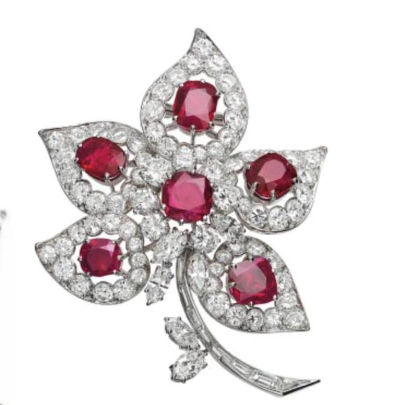 杰奎琳·肯尼迪就曾将一枚自己喜爱的胸针别在了靴子上。而在她之前,作为同希腊船王奥纳西斯在社交场合出双入对的情人,20世纪最伟大的花腔女高音歌唱家玛丽亚·卡拉斯也是一位高级珠宝的拥趸。这位歌唱家本就有着天下无双的嗓音,更有着在舞台上展现个人戏剧激情的野心,为此她曾将个人的体重从92公斤硬生生减到了63公斤。1954年年底,米兰斯卡拉歌剧院,由她演绎的斯蓬蒂尼三幕歌剧《贞洁的修女》,声音袅袅入云,身影芳华绝代……以致当时最尖刻的乐坛批评家都要奉上自己的膝盖,并发出这样的不解,“天籁之音竟然是从如此轻盈甚至有些羸弱的身影中发出的。”在同希腊船王长达8年的爱情长跑中,后者为其买下的高级珠宝可谓不知凡几(卡拉斯的前夫在她每个首场演出前,都会送上一枚珠宝首饰,这已然成了歌唱家的某种习惯)。但在1967年,也就是杰奎琳·肯尼迪和船王正式完婚的前一年,这位歌唱家为自己买下一件镶嵌了钻石和5颗红宝石的树叶造型胸针。卡拉斯后来喜欢在社交晚宴上穿着一袭丝缎质地的晚礼服,每当这个时候,这枚梵克雅宝胸针都会别在她肩头。