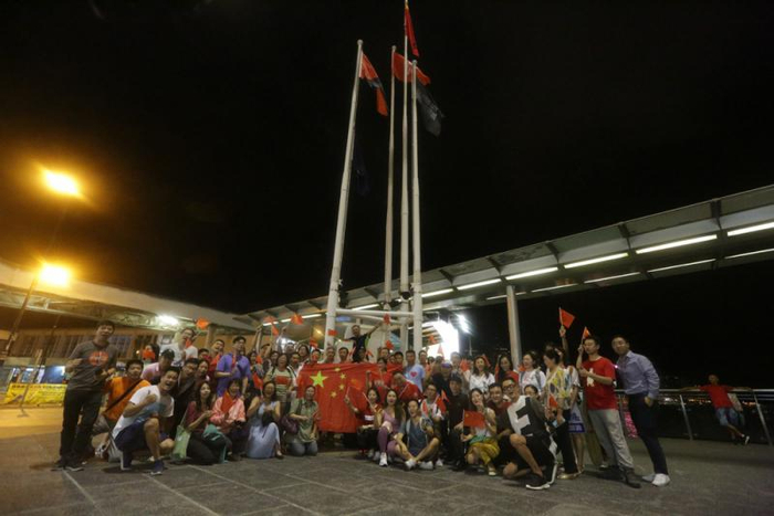 海外网8月6日电 有“港独”分子再借示威游行掩饰,挑战国家主权。据《文汇报》消息,尖沙咀5日晚再有狂徒扯下国旗,更丢到海中,这已是3天内第2起。面对国旗被辱,数十名市民义愤填膺,相约当晚来到尖沙咀码头,自发重新升起国旗,保护国家尊严。他们又高呼“支持警察,守护香港严惩暴徒,严正执法,我们都是中国人!”场面感人。