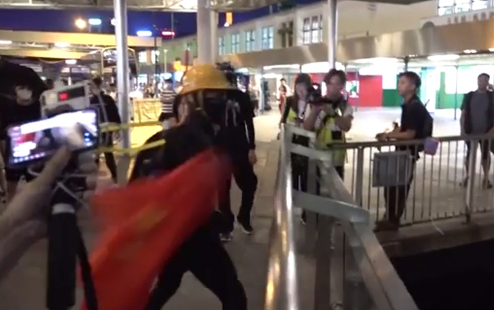 特区政府指,示威者违法堵路、阻碍港铁列车服务、有计划地冲击政府总部及不同地区的警署、破坏警车、袭击警务人员,甚至纵火,晚上更再次将国旗从旗杆拆下并抛入海中,公然挑战国家权威。