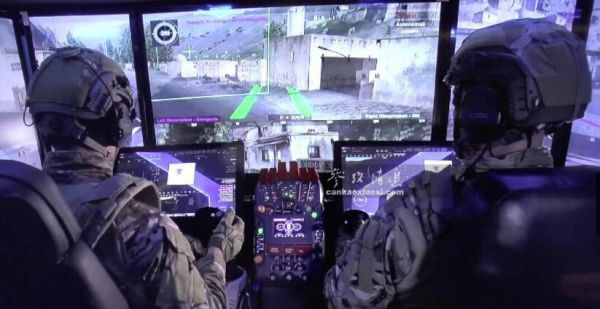 以色列拉斐尔公司“未来坦克”模型座舱内部视图。(法新社)。