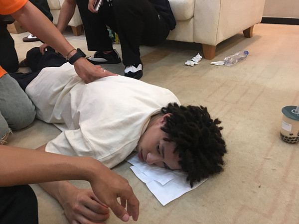 可比起饿和困,更麻烦的是腰伤。在前面跳个人作品时,叶音把腰闪了,一回到后台就疼得趴地上了,队员们手忙脚乱给他按摩。然而battle时再回到舞台,还是跳得一点都不惜力,还是那个“人体弹簧”叶音。看他笑得露出一口大白牙,观众根本瞧不出这人身上带着新伤。