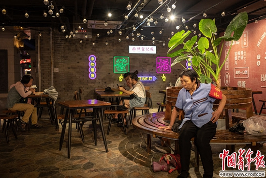 8月4日晚10点,西单“约饭街”里依然有吃宵夜的人。这个聚集了众多餐厅的地方还原了老北京街道的装修风格,营业至晚11点。
