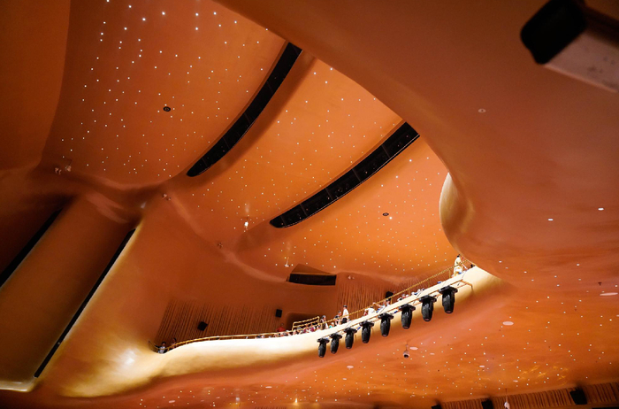 这个看上去不得已而为之的做法,反而让大剧院的这个设计成为国内首个采取这样设计的大型剧院。但问题来了,上下两个剧场重叠在一起,会不会互相影响?