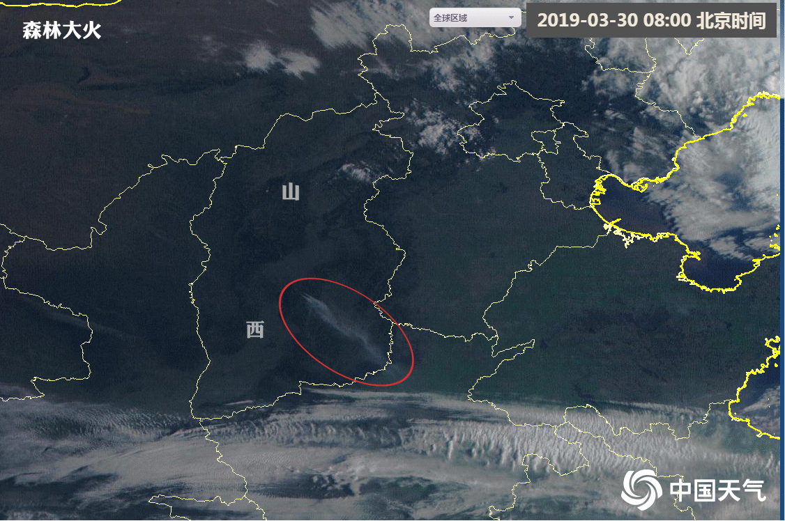 2019年3月29日,山西沁源县发生一起森林大火。从3月30日上午8时-11时的风云4号卫星云图上,可以清晰地看到火场上空西北、东南走向的明显烟雾。通过对卫星云图进行图像处理、定位等工作后,气象部门就能够识别出森林火灾热源点,并制作出决策服务产品供相关部门使用。