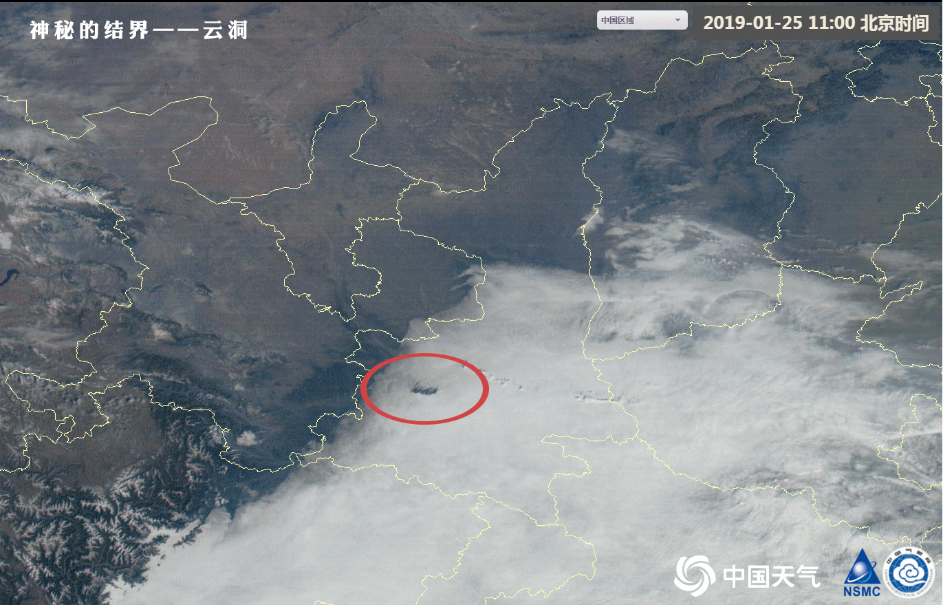 为什么全世界都在背着我下雨(雪)?这张云图或许能告诉你答案。2019年1月25日,陕西上空出现了一个明显的云洞。云洞的形成主要和地形有关。这里是秦岭的主峰太白山,暖湿气流从南边过来,翻山下沉后,北坡的水汽不够,而且下沉运动增温,利于水汽蒸发,就形成了背风坡下沉晴空区。类似的情况在北京也经常能看到,这也是所谓“帝都结界”的制造者。