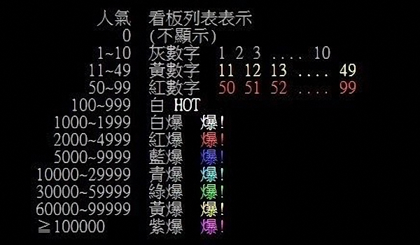 PTT人气指数与各色“爆”的对应