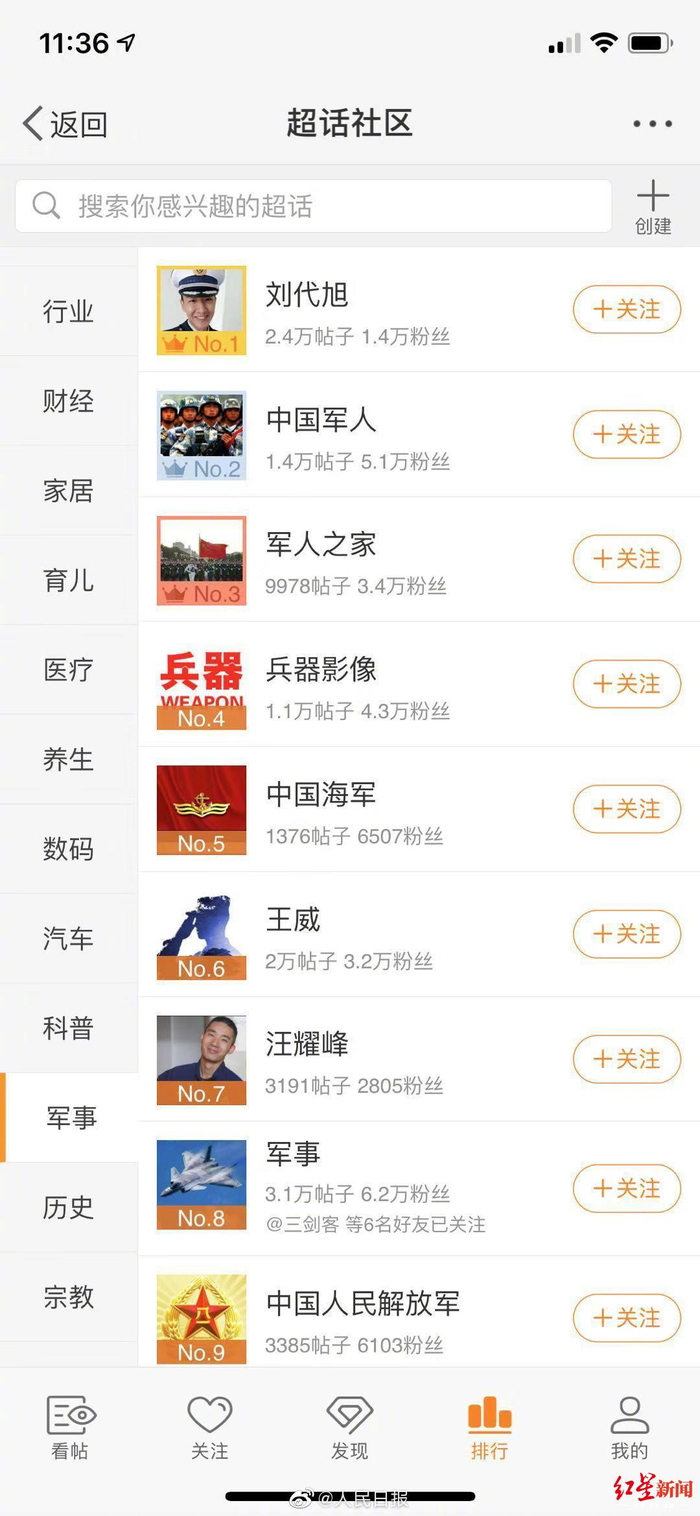 刘代旭名字的超话排在军事超话榜的第1名
