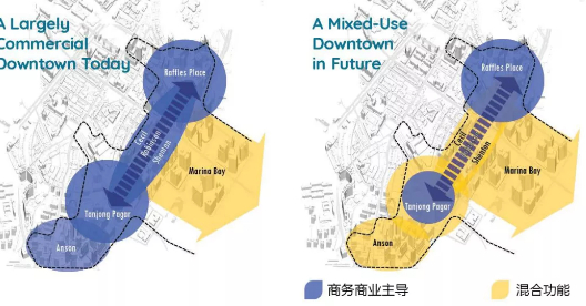 ↑CBD内现有商务功能将在未来大幅置换为混合功能