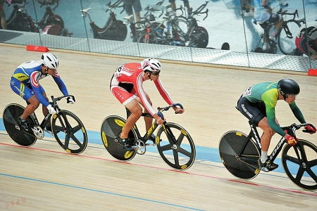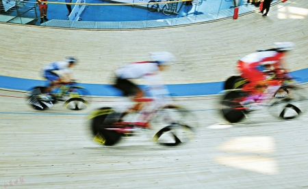 场地自行车赛也被称为“圆形场地”比赛,因比赛须在表面为木质、周长为250米的圆形场地上进行。赛车场的跑道为椭圆形、盆状的设计结构,跑道最大的安全速度范围要设计在85km/h-110km/h之间。场地赛中采用的自行车只配有一个齿轮,引无闸,是高科技应用的重要场所。在场地自行车比赛中,运动员的技战术水平、克敌制胜的手段、坚持不懈的拼搏精神才是最有价值的,现场观看这样激烈的比赛,足以使人欢呼、沸腾。纵观5天的比赛,浙江队与上海队的表现给观众留下了最深的印象。
