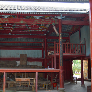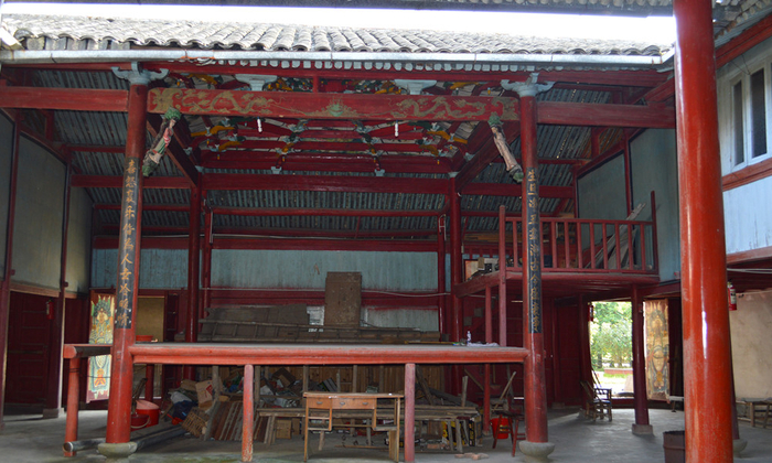 在三次温州古戏台调查中,笔者发现有约半数戏台都设于“宗祠”——即供奉一族先祖灵魂、彰显其功绩的灵庙——内部。不仅在温州,整个浙江省境内都遍布着这种“宗祠戏台”,数量接近甚至超过了“神庙戏台”。宗祠是当地最具凝聚力的地区自治团体“宗族”的象征。对宗族成员而言,设于宗祠之中的戏台是极为重要的祭祀场所,因此,对戏台的重视度也非同一般。众所周知,上世纪60年代中期之后,“文化大革命”的狂风骤雨席卷整个中国大地,地方城市的传统文化遗产也毫不例外地遭到了破坏。其中,深受摧残的文化遗产代表便是汇聚了传统建筑样式精华的古戏台。自2009年开展调查以来,笔者听说了众多关于“文革”期间遭到破坏或幸免一劫的古戏台的轶闻。其中最让人印象深刻的是,浙江、福建一些世代居于当地的老人们曾同蜂拥而至的红卫兵正面交锋,拼命护下了那些有历史渊源的宗庙和古戏台。(参照拙文《福州市戏台参观记》,刊于《东京外国语大学论集第80号》,2010年7月)正是这份对至亲一族强烈的归属感以及对先祖的敬畏之情,才使那些能够令人抚今追昔的宗祠和戏台在数百年间仍得以存留于世。