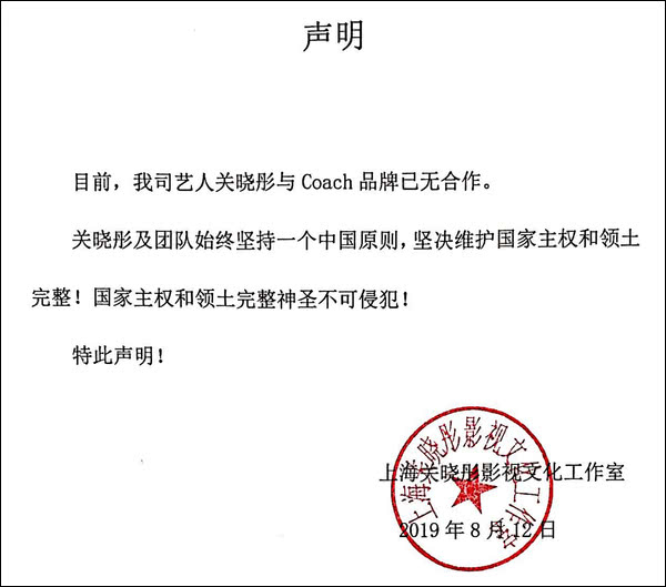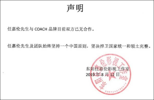 事后涉事品牌扎堆发布道歉声明,表示尊重中国主权,坚决拥护一个中国原则。各品牌代言人也接连宣布解约声明。
