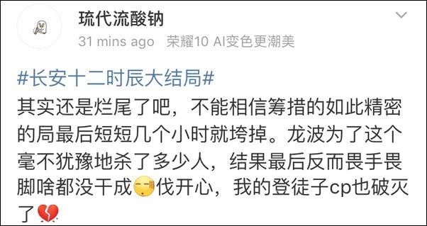 部分网友认为,结局太过仓促草率,“用两集时间结束了四十六集的阴谋”,很多梗没有圆上。观众们还表示,颇受喜爱的“登徒子cp”张小敬和檀琪最终还是分道扬镳,令人遗憾。