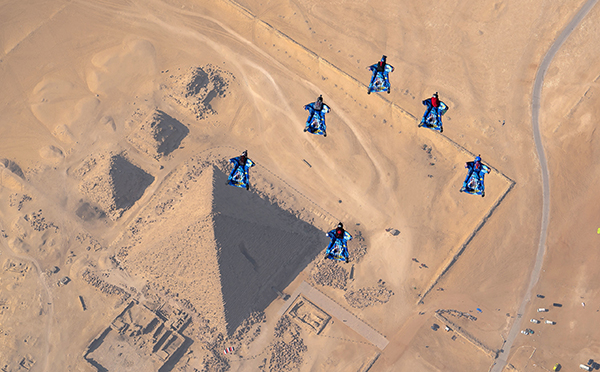 2019年7月14日,一群极限运动爱好者在古埃及金字塔完成了一次翼装飞行炫酷挑战。东方IC 图