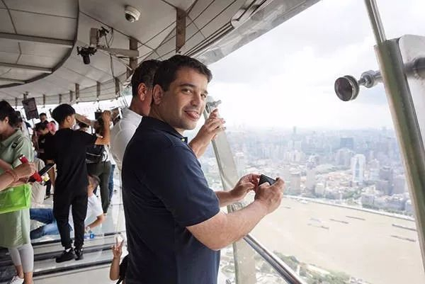 (阿米尔·柯哈维在上海东方明珠)感叹二维码付款在以色列市长一行人中,绝大多数的足迹都遍布十几个国家,而其中最多的还是美国与西欧。来到东方这片遥远而陌生的土地,他们既惊奇又欣喜。“中国太大了。”几乎每位市长都如此感慨,“说实话,来到中国这几天,这是我们唯一的感受。”而阿米尔恰恰是一个特例。尽管有着波兰与罗马尼亚血统,这位犹太人市长并非欧洲与美国的常客,却算得上一位“亚洲通”。阿米尔儿时便与中国产生了某种联系。7岁时,他就和从事货运业的父亲远赴中国香港,阿米尔的少年时代在维多利亚港的繁华灯火下度过,那时他游历了东南亚诸国,对亚洲的了解远超其他以色列人。1997年香港回归的前一年,16岁的阿米尔回到了以色列,此后他的人生便少有与中国的联系。“我在香港读书的时候,这座高楼还是亚洲第一高楼。”阿米尔在看到一张香港夜景的照片后说,他所指即1990年建成的香港中银大厦,“而就在我离开后没多久,上海的金茂大厦就超越了它。”这一日,除了犹太难民纪念馆,阿米尔与同伴们还参观了东方明珠。在距离地面259米高的悬空观光廊上,他静静眺望着浦江两岸林立的摩天大楼,感慨油然而生。最令阿米尔感兴趣的,是这个迅速成长为世界第二大经济体的蓬勃发展。“上海的地铁真是太让人难以置信了。”一次意外的地铁之旅,让阿米尔和同伴认真琢磨着上海地铁2号线上的点点滴滴,连二维码付款的自动售货机也没有漏掉。“这就是大城市该有的一切,”与阿米尔同龄的内谢尔市(Nesher)市长罗艾尔·列维(Roey Levi)也说道。为了让这些以色列市长们对中国城市有更为深刻的体验,以色列驻沪总领事普若璞(Eyal Propper)亲自带着一群“特殊又好奇的”游客搭乘了地铁。在面积不到两万平方公里的以色列,私家车和巴士是主要的交通工具。目前全国仅在滨海城市海法有一条地铁,长度只有1.8公里。而现在正在修建的首都特拉维夫第一条地铁恰好由中国公司承建,预计2021年完工。