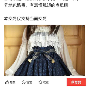 闲鱼上疑似涉黄“洛丽塔”服饰页面 这些卖家还在商品销售页面中配发了精美的洛丽塔服饰图片,商品描述带有“免费送”“全新”“仅支持当面交易”等字眼。卖家疑似均为男性,一旦买家询价,卖家便要先确认是不是同城交易,是不是本人要买裙子等问题,并询问年龄以确定买家是年轻女性。