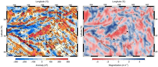 中国科学院南海海洋研究所林间团队副研究员张锦昌与多国科学家合作,通过详细分析最新采集的海洋磁测数据,获得了西太平洋大塔穆火山形成机制的新认识,相关成果近日发表在《自然—地球科学》(Nature Geoscience)上,题目为Oceanic plateau formation by seafloor spreading implied by Tamu Massif magnetic anomalies(《大塔穆火山磁异常特征揭示洋底高原形成于海底扩张》)。