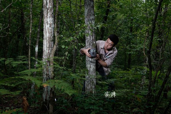 2019年8月4日,湖北神农架,今年3月刚来到黄柏阡管护中心的26岁巡护员蔡定桥,正在野外安装红外相机。