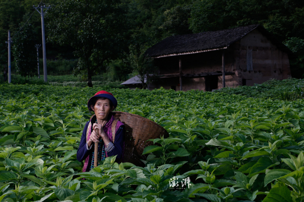 2019年8月1日,湖北黄柏阡村,61岁的彭德玉从早年种植玉米、土豆到2016年开始产业转型,在自家地里大面积种植当归、川乌、独活、苍术、玄参等中药材。