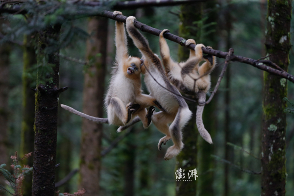 在神农架大龙潭的山林间,树影晃动发出“簌簌”声响,夹杂着几句低沉的“呱、呱”吼声,那是二十来只金毛蓝面的川金丝猴正下山去科研站讨要食物——气候寒冷,山里食物短缺。