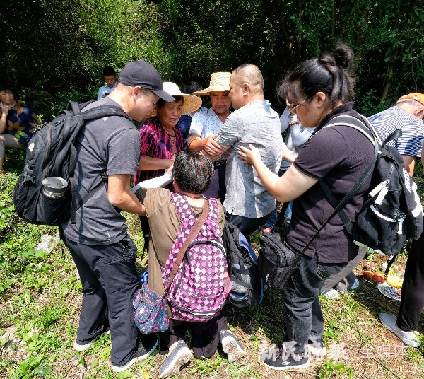 上午10时40分许,艳阳高照,烈士亲人们顶着高温烈日,来到了何湾镇南山脚下,迈步山间土路,宋家屋后有个小山坡,山间小路向上蜿蜒,就到了宋家的坟山,烈士的墓碑端立在老坟中间。拾级而上,一眼看到张洁亚烈士的墓地、墓碑,陈惠珍急步向前,一瞬间泪流满面:“姐姐啊,我们终于找到你了,我们来看你了……“边说边抚摸墓碑,还拿出一张张洁亚烈士的照片,小心地放在墓碑上。张洁亚的侄子陈锡荣拿出一块沾水的抹布,一遍又一遍地擦拭着墓碑。