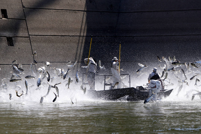 为了应对藻类繁生,亚洲鲤鱼于20世纪70年代被引进到美国(按:在美国,亚洲鲤鱼并非专指一种鱼,而是对青鱼、草鱼、鳙鱼、鲤鱼、鲢鱼等8种鱼的统称)。然而,20世纪90年代,由于洪水泛滥,亚洲鲤鱼从商业池塘涌入了淡水系统。由于其繁殖能力极强,开始挤压其他淡水鱼类的生存空间,破坏了生态平衡。如今,亚洲鲤鱼的泛滥早已成为了美国一个令人头疼的生态环境问题。