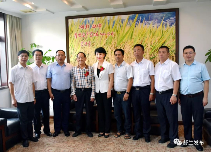 据吉林省舒兰市委宣传部微信公众号“舒兰发布”8月13日消息,继4月6日赴海南三亚拜会袁隆平,袁隆平为舒兰亲笔题字“中国生态稻米之乡——舒兰”后,8月8日、9日,舒兰市长金华带领副市长张建成及相关部门负责人赴湖南长沙,再次拜访袁隆平,聘请袁隆平担任舒兰市政府首席顾问并为其颁发聘书。