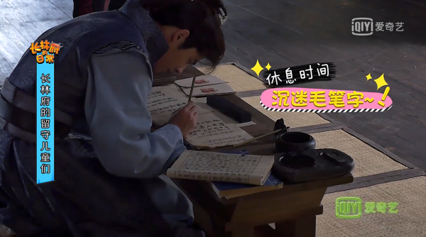 拍《琅琊榜2》时,练习毛笔字的刘昊然。