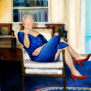 挂在爱泼斯坦豪宅中的克林顿女装像。(图自“Saatchi Art”网站)