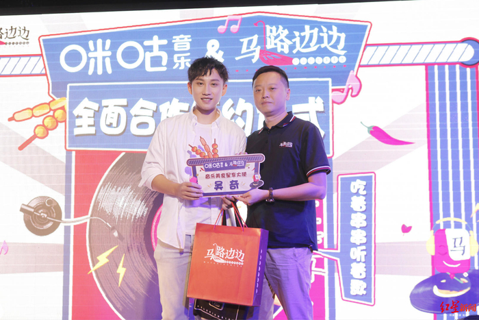 签约仪式现场,去年《中国好声音》全国6强吴奇以“音乐美食星享大使”身份亮相。他说,自己很喜欢吃火锅、串串等成都美食,这次的专属歌单里也有一首他演唱的《陪你旅行》,希望通过歌声来激发大家享受美食的过程。