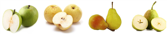 市面上常见的梨品种(从左到右依次为翠玉梨、砀山酥梨、巴梨、新疆香梨)
