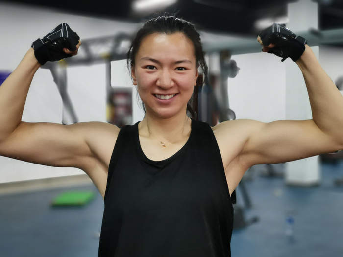 陈可怡:其他队友都晒得好黑,我还好,属于不容易晒黑的。前几年体型这个问题真的非常困扰我,那时候刚好是想要爱美的年纪,就会觉得出门穿牛仔裤的时候不好看或者穿衣服的时候二头肌崩得很紧也不好看。最近几年思想变化较大,从内心深处接受了从事这个职业给我带来的一些变化,我觉得这是另外一种美。