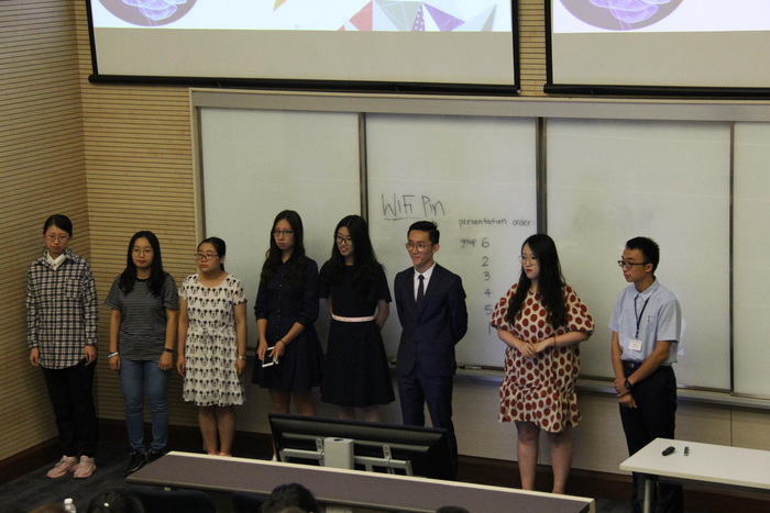 开课之初,按照教授要求,根据项目分组协力完成所选课题。小组需要选择特定的topic,同时面向教授及全体同学做全英文的ppt展示,教授据此打分并给出意见。在接下来几天的课程中,分别对相关主题进行了讲解,加深同学们对主题的理解,同时敦促大家跟上进度,不可掉以轻心。小组展示的前一天,每一个组都汇集在酒店大厅里激烈的讨论,听取组员意见,及时修正不足。在这个过程里,培养了同学们的团队意识,包括分工、协作等。
