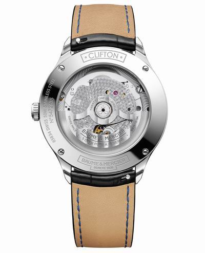 随着十字图案散发开来的,是由深蓝至黑色的渐变色表盘。深蓝、黑色与白色相互呼应,更显冷静与精准。克里顿Baumatic蓝色表盘款式搭配可自行更换式黑色鳄鱼皮表带及针式表扣,本款自动上链腕表展现别出心裁的风格,不论在任何时刻或场合都很适合佩戴。