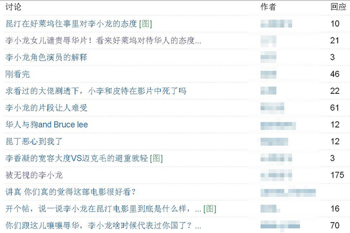 豆瓣讨论区中关于李小龙形象的争议已是该片最热门的话题