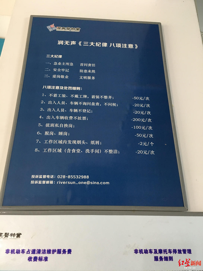 ↑该小区物业办公室内的注意事项及处罚细则