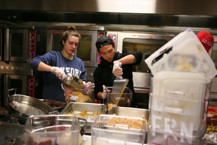 食物回收网络志愿者在其所在大学的食堂回收打包剩余食物(来自https://www.foodrecoverynetwork.org/)