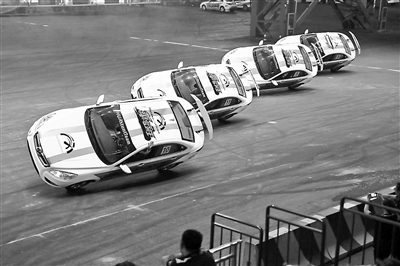 “汽车单轮行驶、定点漂移旋转、摩托空中飞跃……”上午10点,首钢赛车谷宣传片和“华家班”汽车特技表演团队的演出在首钢赛车谷汽车特技秀场轮番登台。北京青年报记者了解到,“华家班”是吉尼斯汽车特技运动项目世界纪录创造者及保持者,现已常驻赛车谷汽车特技秀场。在现场,赛车手或是让赛车单轮漂移,或是360°大旋转,或是在极速行驶中,空中钻火圈和跨越障碍,在场的观众“大饱眼福”。