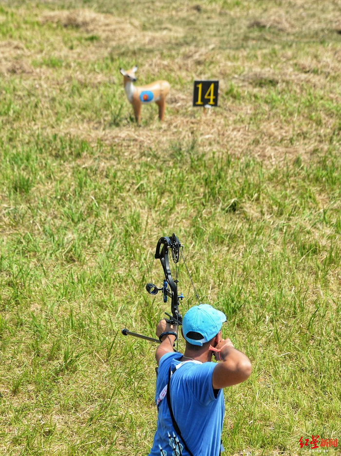 和一般射箭比赛不一样的是,3D射箭项目的靶子是兔子、鹿、野猪等动物模型。比赛中,有选手直言“射中了就可以了”,射得好的选手,还要和“猎物”合影,而一些脱靶的选手还要在草地里找回箭。