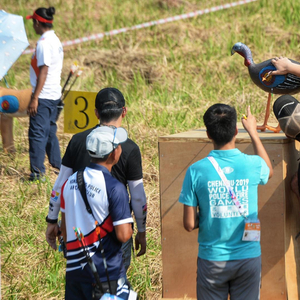 有的箭遗憾地没有射中猎物,想要找回来并不容易。每一组射击结束后,选手们都要跟着志愿者进场拔箭,当然,这也是有的选手寻找射失的箭的时候。感觉成绩不错的选手,还要找人给自己和“猎物”合影。