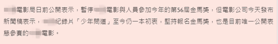 原标题:“唯一坚持参赛”的大陆影片,退出金马奖复赛