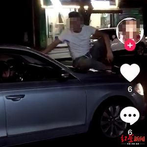 男子坐汽车引擎盖的抖音视频截图 本文图均为 红星新闻 图