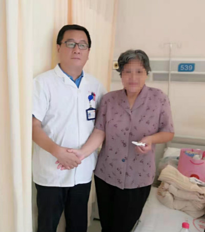 图说:患者董阿姨出院时和主刀医生陈紫千留下的合影。陈立强 摄
