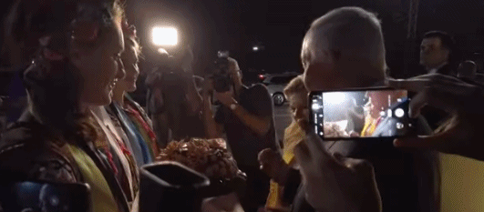 这时,令人诧异的一幕发生了,萨拉在接到这块面包以后,不仅没有品尝面包,还顺势将其扔到了地上。全部的过程都被一旁的媒体全部拍下。
