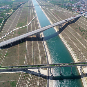航拍南水北调中线工程陶岔渠首枢纽工程。IC photo