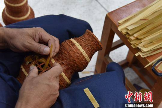 安溪藤铁工艺产业“宗师”陈清河介绍藤铁技艺。 陈龙山 摄